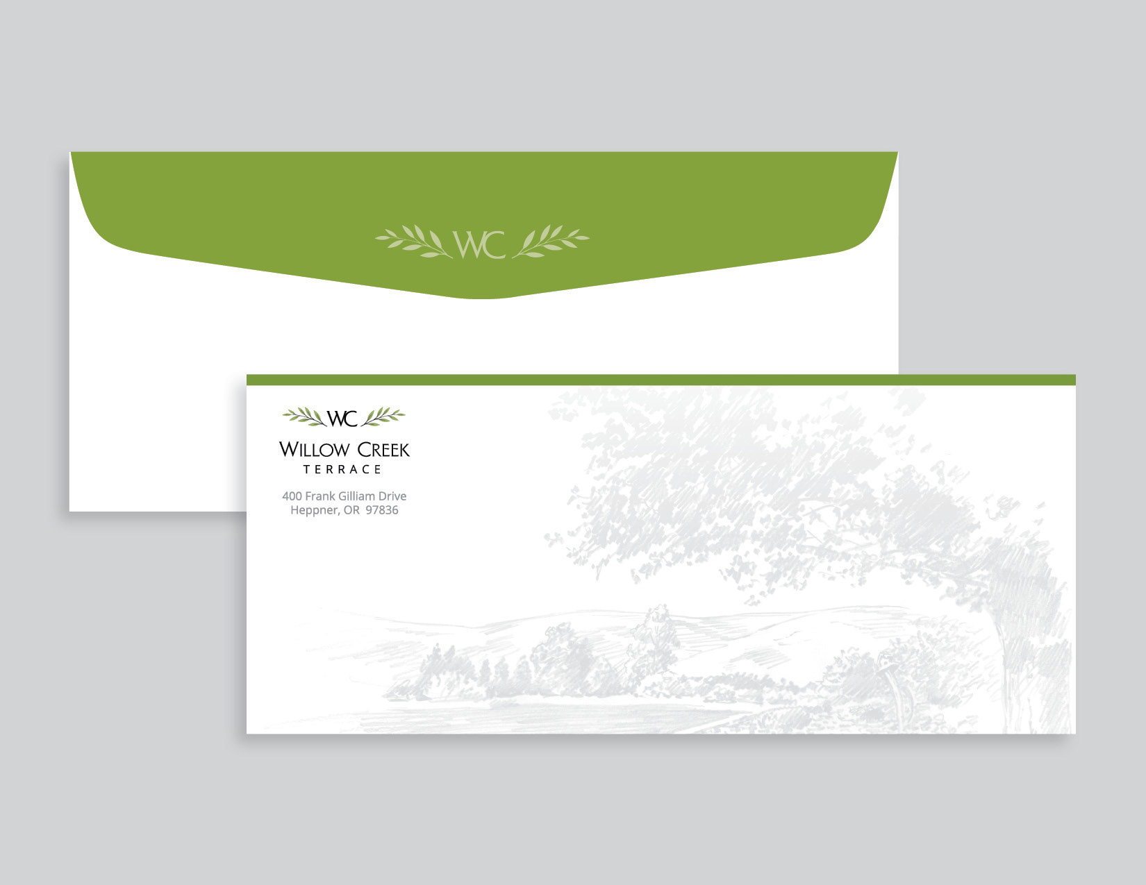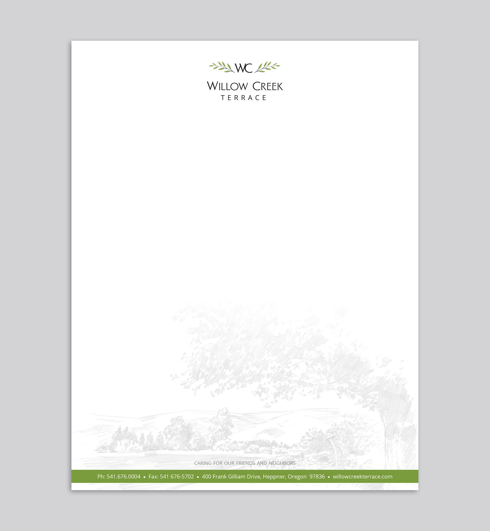 Rebrand for Willow Creek Terrace that included a refreshed logo and stationery.